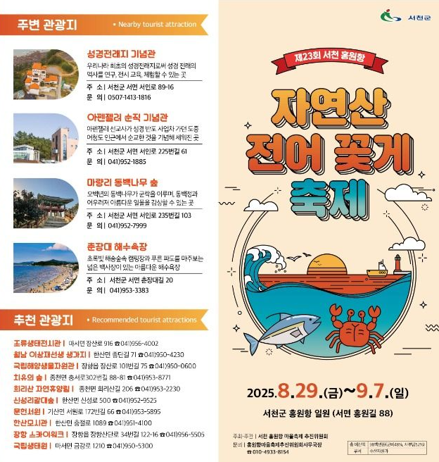 자연의 맛, 사람들의 이야기, 바다의 생명력이 어우러진 ‘살아있는 공간’입니다. 제가 직접 느낀 이 축제는 단순한 경험을 넘어, ‘기억’이 되었습니다. 매년 8월 말에서 9월 초 사이, 짧지만 진한 가을의 시작을 맞이하고 싶다면 서천을 꼭 한 번 다녀오세요. 그 안에서 만나는 자연산 전어, 살이 꽉 찬 꽃게, 그리고 따뜻한 사람들이 여러분의 가을을 더욱 특별하게 만들어줄 것입니다.